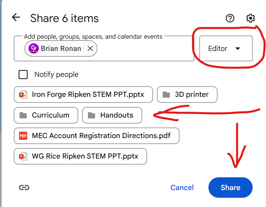 - Share with New User: Click the Share icon and enter the email address of the new owner. Ensure they are set to Editor.